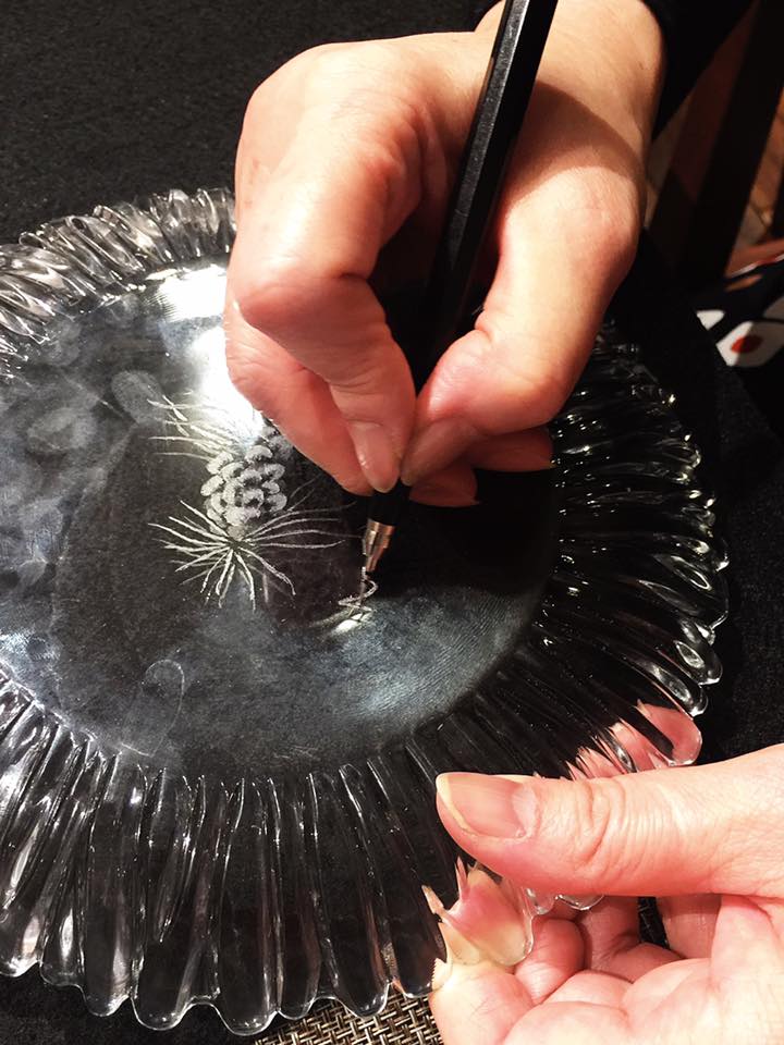 | 先ずはモチーフを決め チャコペーパーを使ってトレースを始めます |
